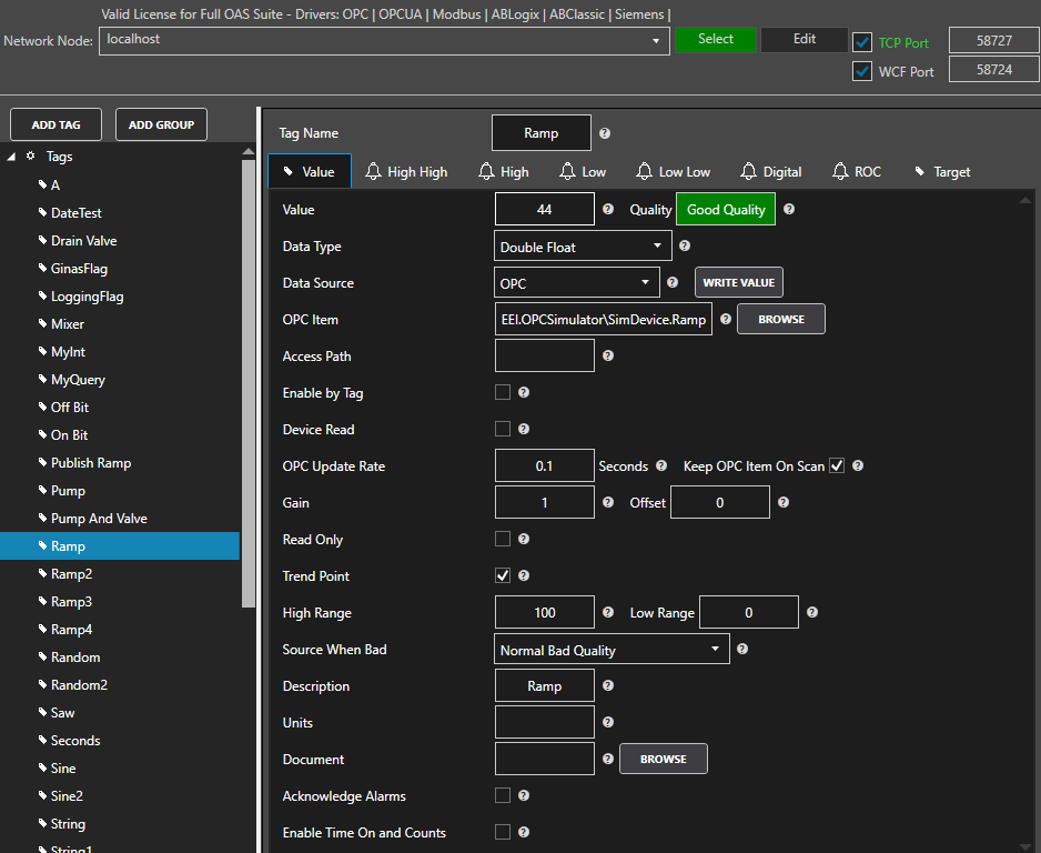 If OPC Item is selected select browse and select the OPC server and Item