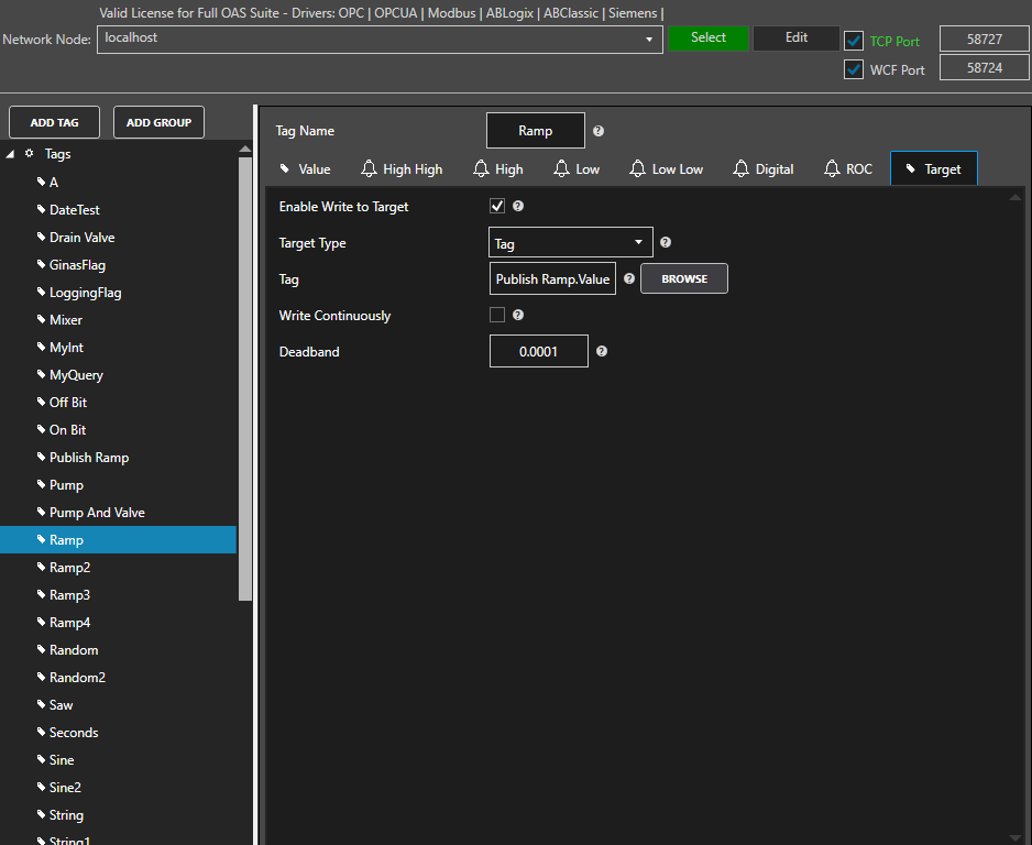 Select the Target Type (Tag, OPC, Azure IoT, or MQTT )