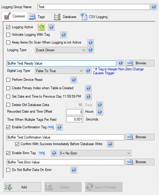Use the Browse button to set the Trigger Tag to “Buffer Test.Ready.Value”