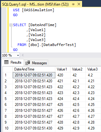 If logging to SQL Server use the SQL Server Management studio to view the contents of the table DataBufferTest under the OASSimulation database.