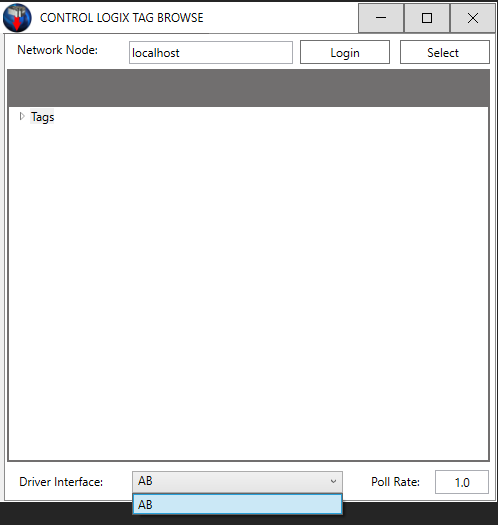 In the Control Logix Tag Browse window that opens, Select your Network Node and then select your AB Driver Interface from the drop down list.