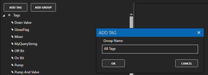 Right Click on the the Tags group at the top of the tag browser on the left and choose Add Group. In the Group Name box that opens, enter AB Tags. Say OK.