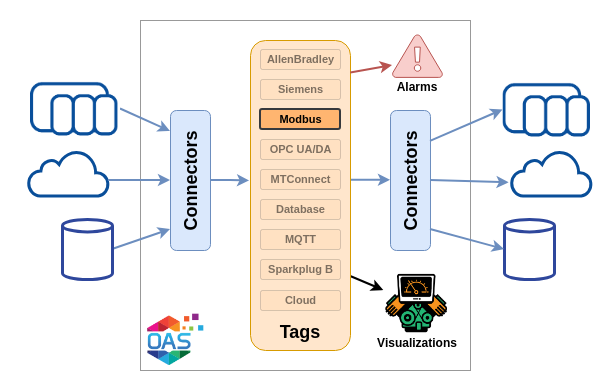The Modbus connector is a device driver with the following features: