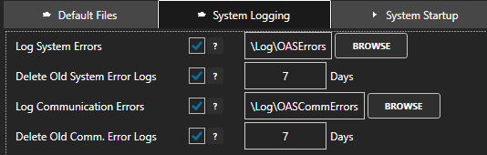 The history of all systems errors can be found in the OAS Error Log specified under Configure-Options-System Logging.