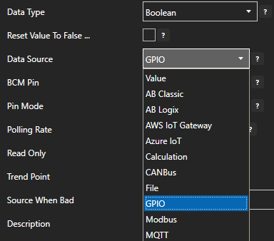 The Open Automation Software platform has a built in communication driver for General Purpose Input / Output when deployed on a Raspberry Pi 4. Tags can be defined to read or write to GPIO pins.