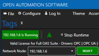 The tags defined are now ready for use in all OAS features like Data Logging, Data Route, and Open UIEngine.