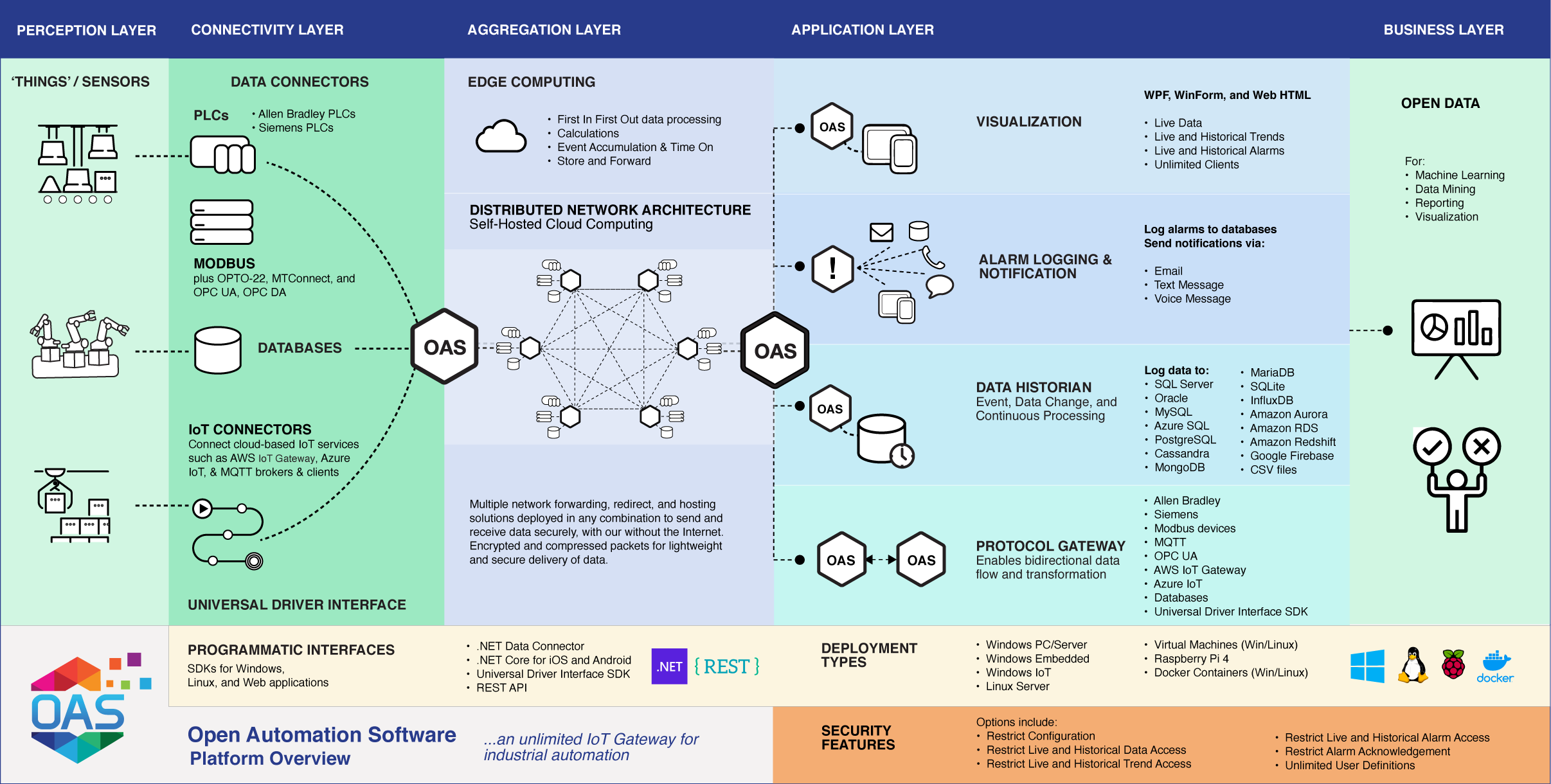 Unlike solutions that lock data in proprietary formats and limit its usability, the OAS platform gives you full control. It’s built upon a single principle, to liberate your data and allow you to move it through your enterprise with speed and flexibility. As a reliable industrial IoT gateway, it ensures smooth, efficient data flow.