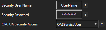 Set the Security User Name and Security Password to user to gain access to the remote OAS Engine for read and write access to the tags to be monitored and set by the MQTT Broker.