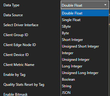 Select the Data Type of the Tag to match the data type of the Metric.