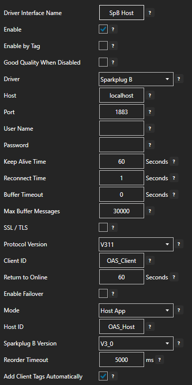The following guide are the steps to define OAS as a Sparkplug B Host Application to receive and update Edge Node Metric values. The interface can control the online state of each Edge of Node or just act as a client.