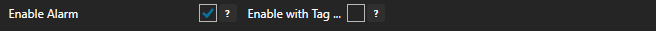 To enable an Alarm Limit for a tag, check the Enable Alarm box at the top of the properties window. To enable an Alarm Limit with a tag, check the Enable with Tag.. box instead. Then use the Browse button that appears to select the tag you wish to use to enable the alarm.