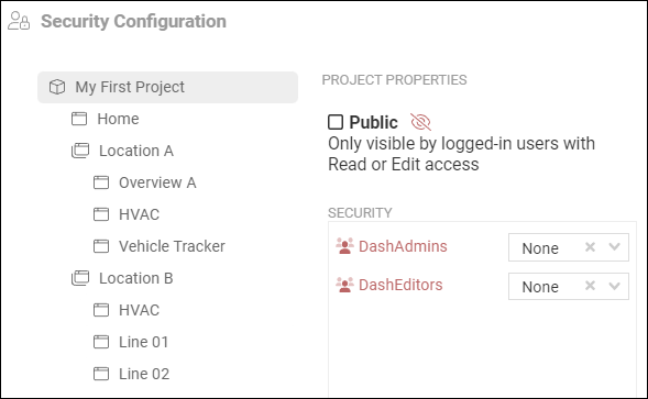 Screens can be published for public display, allowing for open access dashboards and HMIs