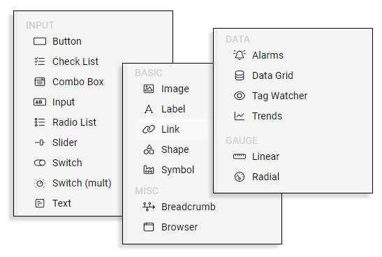 From simple labels to fully customizable gauges, trend charts, and data grids