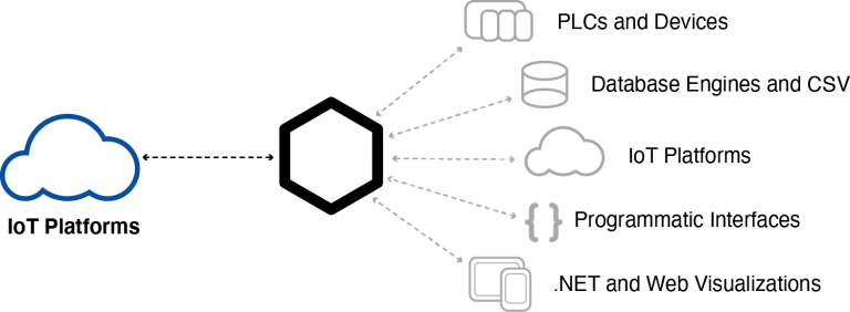 Publish Industry 4.0 data from Modbus devices, Allen Bradley PLCs, Siemens controllers, OPC UA servers, .NET applications, and databases to cloud systems. Data can also be stored and forwarded in the event of temporary network failures to prevent data loss. Learn more ..