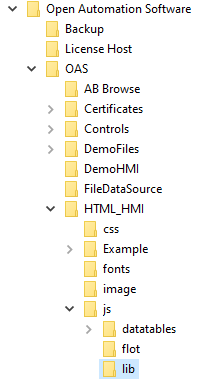 Copy the 4 supplied files from C:\Program Files\Open Automation Software\OAS\HTML_HMI, js and css subdirectories to your project directory keeping the directory structure just the same.