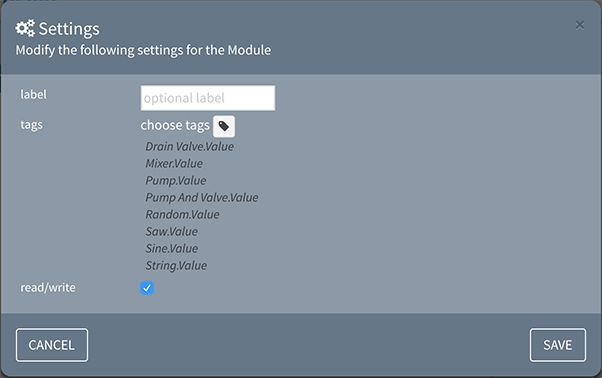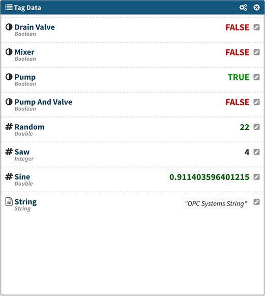 Read/Write: when checked, adds an edit button next to each tag, allowing the user to set the tag’s current value