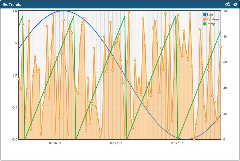 This module encapsulates the Web Trend viewer and allows the end-user to configure it to display a chart plotting both real time and historical trends. Because it is based on the Web Trend product, it retains all functionality, but requires no programming to configure. See the following for more information on Web Trend.