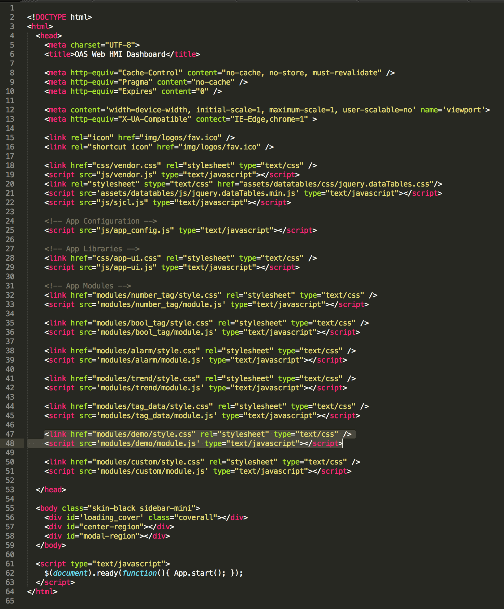 This module allows you to specify any web URL so you may embed your custom code into the Web HMI Dashboard. You can either host the contents of a Custom module on any web server, or you may also add it to the modules folder in the application itself.