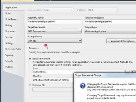 View the following video on how to set the Target Framework for you Visual Basic or C# application: