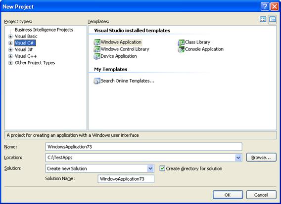 Start Visual Studio and select File->New->Project to create a new C#, C++, or VB.