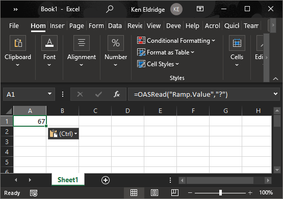 Notice that the formula =OASRead(“Ramp.Value”,”?”) appears at the bottom of the window.