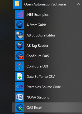 Start the OAS Excel tag browse application from the program group Open Automation Software.