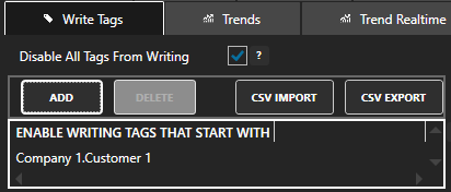 You can also designate tags by complete name with the list Tags To Enable Writing. This is a way to include specific tags within a tag group, but not all tags in the group.