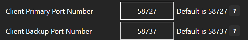 The image below shows an example where the primary port is now 58777 and the backup port is now 58778.