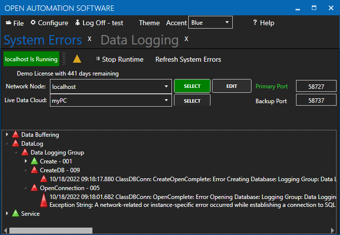 Select Configure-System Errors and expand any Siemens Interface error to see the details of the error.