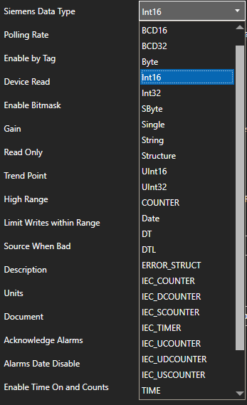 Note: If you are using Gain and Offset in a tag to scale an integer value to a floating point value use Double Float or Single Float as the Data Type.