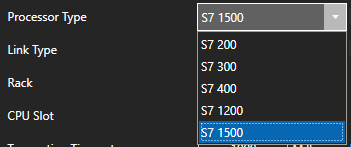 Set the Processor Type of the Driver to match the controller S7-200, S7-300, S7-400, S7-1200, or S7-1500.