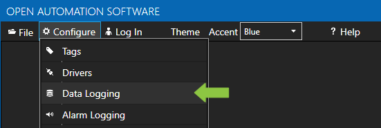 - In the OAS Configure Application, select Configure >> Data Logging from the top menu.