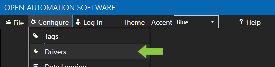 - Select Configure >> Drivers from the top menu.