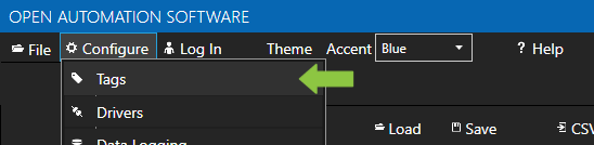 - In the OAS Configure Application, select Configure >> Tags from the top menu.