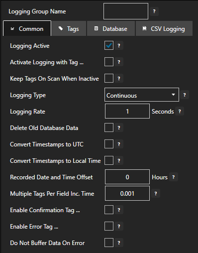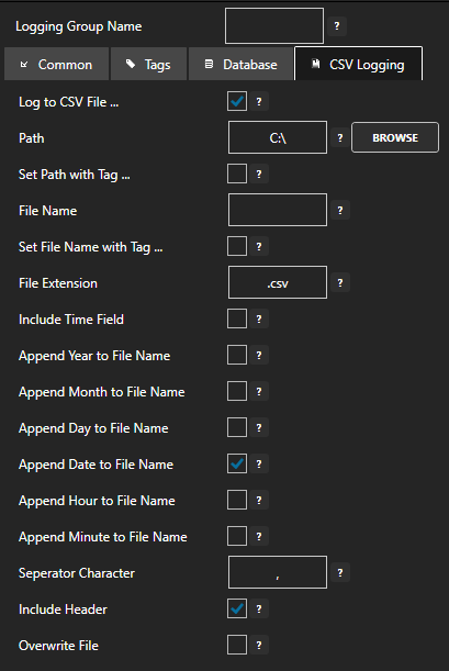 - To log to CSV, use the CVS Logging tab.