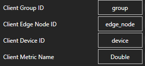 Specify the Client Group ID, Client Edge Node ID, Client Device ID, and Client Metric Name for the Edge of Node Metric value to read and write.