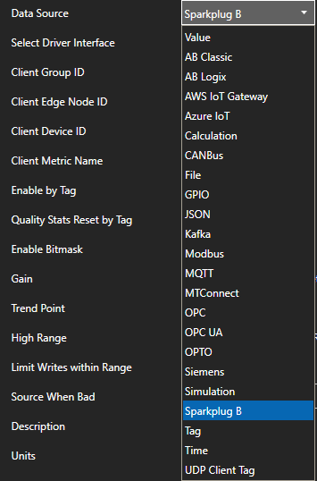 Change the Data Source Tag property to Sparkplug B.