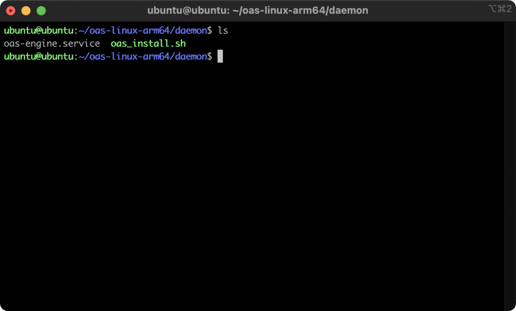Navigate to the daemon directory within the installation path and locate the oas_install.sh script. In this example, we’re using the ARM64 installation on a Raspberry Pi 4 running Ubuntu, but the same instructions and commands apply to any Linux distribution.