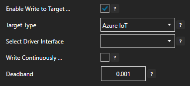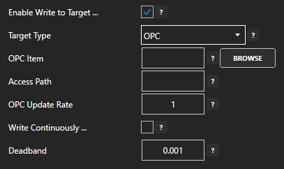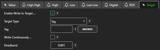 - Select the Target Type (Tag, OPC, Azure IoT, Azure IoT Edge, or MQTT) from the dropdown.