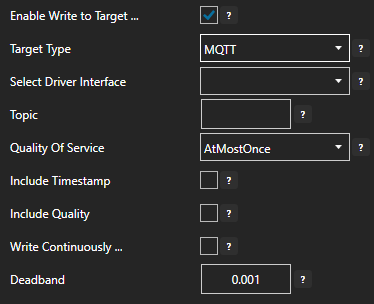If MQTT is selected then select the Driver Interface and Topic.