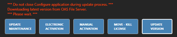 Do not close the Configure OAS application. A message will be displayed during download and installation. The Configure OAS application will close automatically.