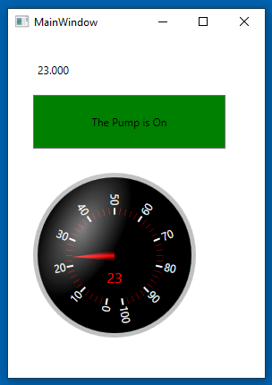 Next, add a button to the window by double clicking on OPCWPFButton on the toolbox. Use the Pump tag for the button, it is a Boolean data type. Set Content_Tag in the properties window to Pump.Value. In the ContentFormatBooleanFalse property enter The Pump is On and the in the ContentFormatBooleanTrue property enter The Pump is Off. That way the button text will be something more meaningful than simply True or False.