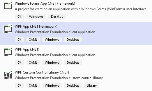 Open your existing Visual Studio application or start a new one, either VB or C#. Specify WPF App (.NET Framework) as the project type.