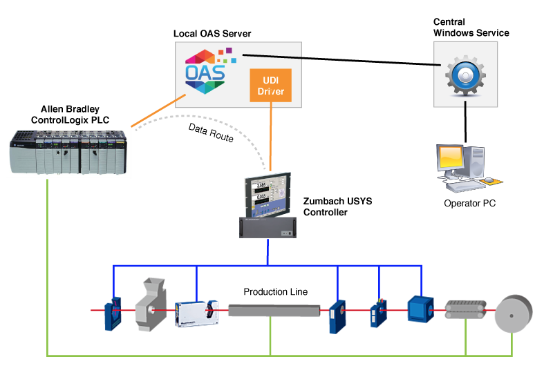 Using the Data Route feature of the OAS Platform, it was then possible to translate data from the Zumbach Controller into the Allen Bradley PLC. This capability of the Platform is available for any data exposed to the OAS service, effectively making it a universal data bus.