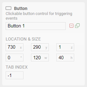 In the component properties panel, you can enter pixel coordinates for the x, y, z, and rotation values. The x and y values position the component relative to the zero position in the top/left of the screen. The z value determines the layer position, with larger values on top. And rotation is in degrees.