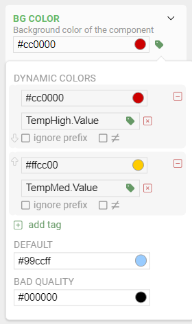 You can also use a single Tag and different Alarm thresholds instead, making the color binding much simpler to control. For example, modifying the Alarm threshold on the server will instantly update the UI without needing to modify the screen or component.
