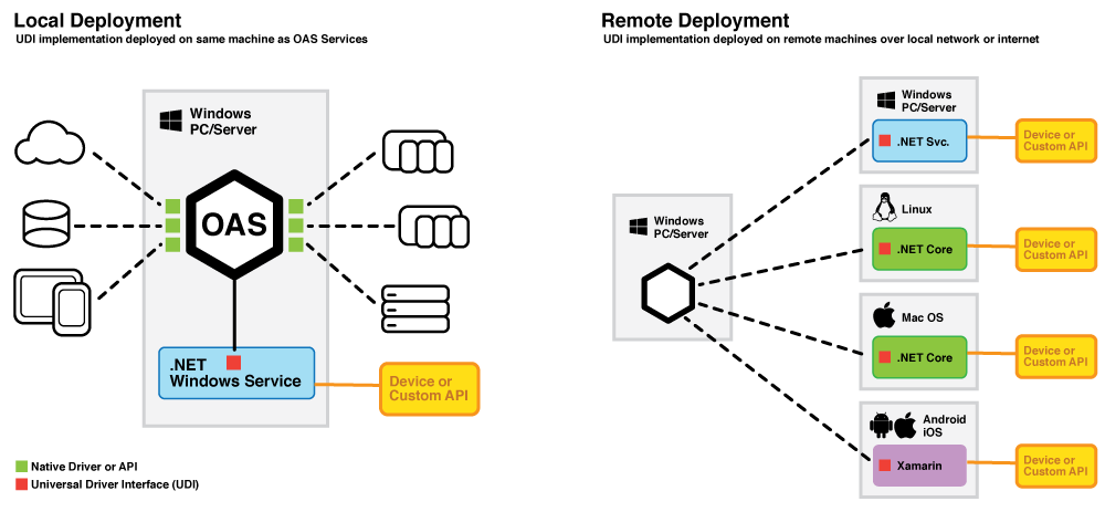 By implementing a driver using the UDI SDK, you can now open up many more opportunities to connect between devices, data, and APIs. A UDI implementation bridges the gap between previously unsupported or proprietary data sources and the OAS Platform.