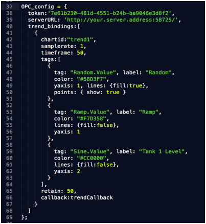 Within your web application code, you defined the configuration of the Web Trend data feed, including which OAS Tags to monitor, meta data on each tag, display options, and more. Then you define a function that gets called as data streams down to the client.