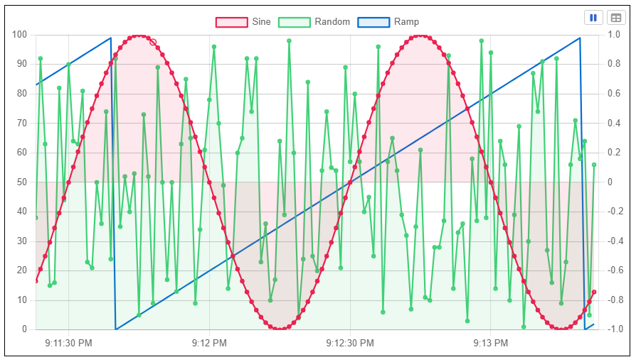 At that point you are free to integrate the data feed into your custom code, apply the feed to 3rd party charting libraries like ChartJS, Flot Charts, and others. Or, you can use that trend data to perform client-side calculations of your own. OAS handles all of the data collection, communications and delivery, while leaving you free to decide how that data is displayed.