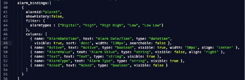 Within your web application code, you defined the configuration of the Web Alarm data feed, including how to filter Alarms, display options, and more. You can optionally integrate with Javascript events for custom handling of user inputs.